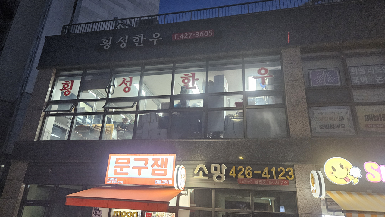 바로 강동구 고덕그라시움아파트 1단지 후문쪽 상가 2층에 자리잡은 『횡성한우』에요.
