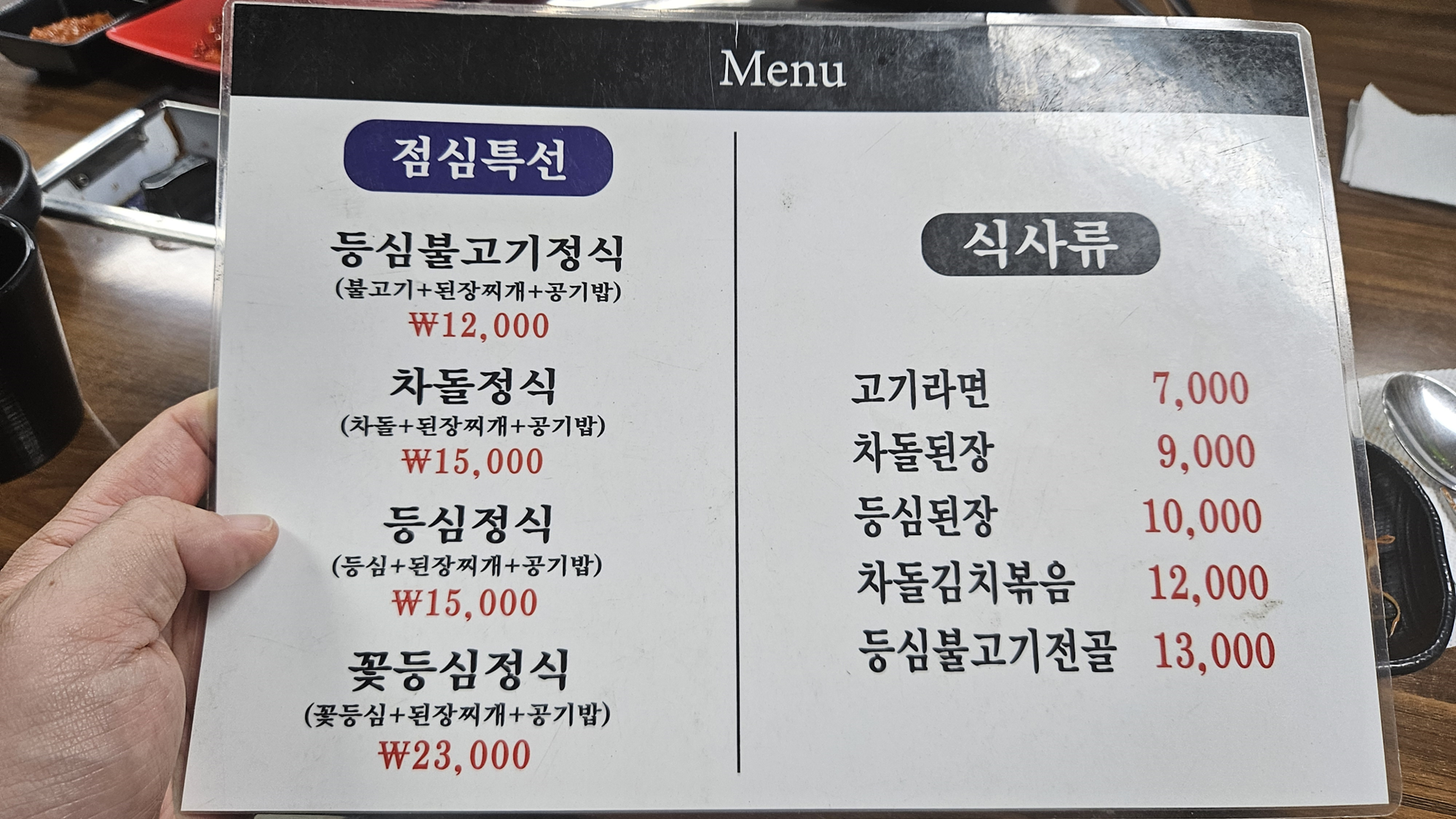 저는 이집에 가면 항상 살치살 2인분과 차돌박이 1인분, 그리고 식사메뉴로 등심된장을 주문합니다.